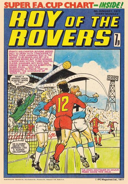 Roy of the Rovers (Roy Race) is a character that first appeared in Tiger comic (11 September 1954) which got his own spin-off series lasting 872 issues. Started in the Tiger comic newspaper style A4 paper and then 1990's issues were full colour glossy magazine format.