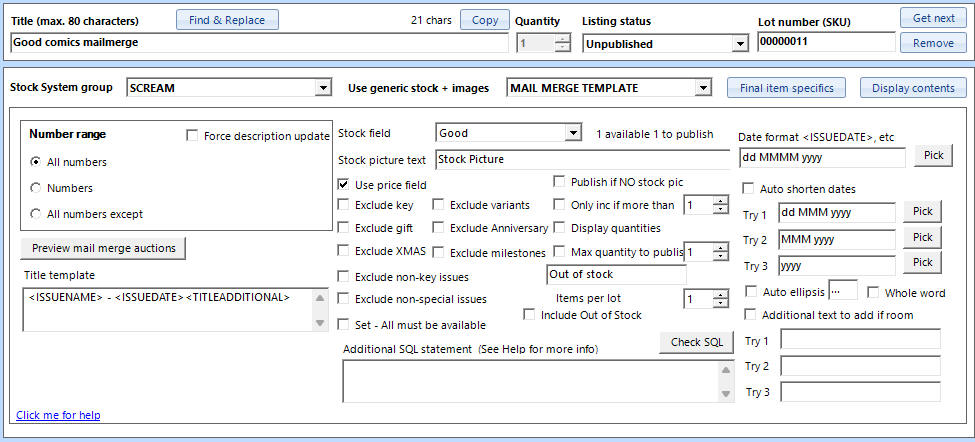 mailmerge will have the stock system price for the 'Good' grade. We do need to put in a 'Shipping