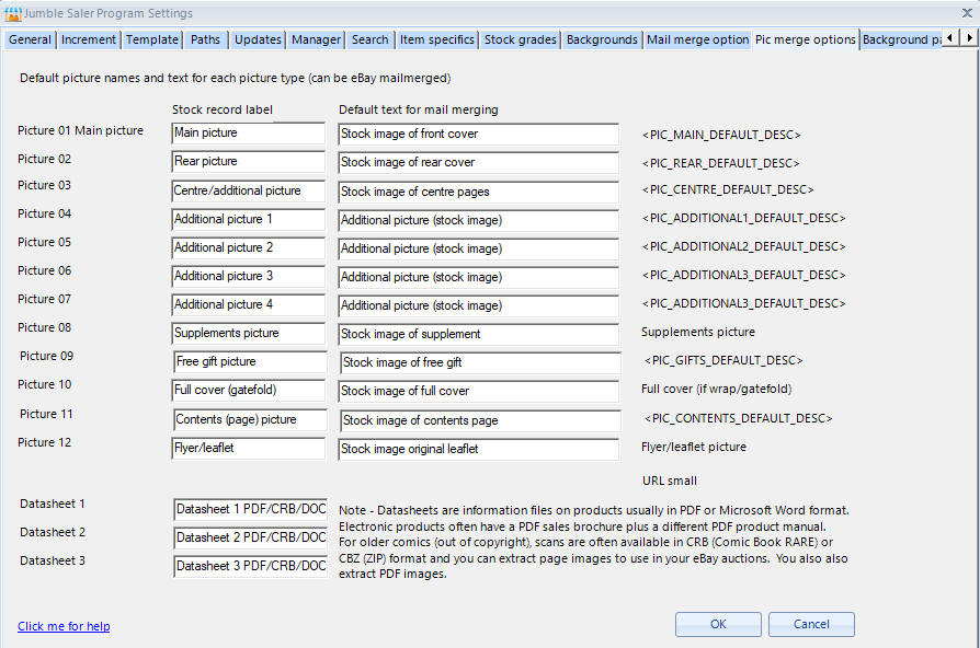 On the main Jumble Saler screen, choose the 'Stock system' tab and then