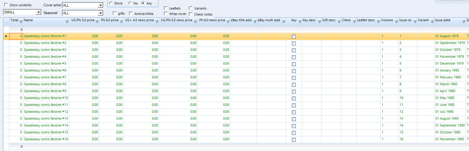 We've stopped at number 16 but we could have dragged all the way down to issue 120 to have our basic products created for use. You will notife that the ProductCodes are now uniquely numbered, as well as the IssueNo and the Names. Plus the dates have been increamented in 1 month intervals. In the case of this magazine, we will have to edit some of these.